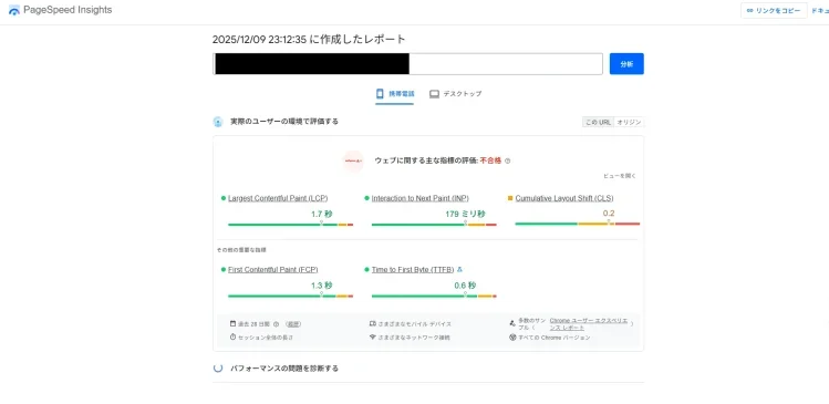これはPageSpeed Insightと呼ばれる、Webページの表示速度を検証できるサイトで見た結果です。